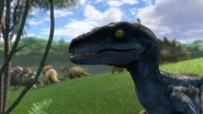 Blue was a velociraptor who was genetically modified by the scientists who worked on Jurassic World. She was the most cubbing of her sisters, Delta, and Echo and they were exhibits at Jurassic World. They were trained by Owen Grady, a man who had affinity for dinosaurs and was against the idea of using the girls for Vic Hoskin's own purposes. From the video footage that Maisie Lockwood watched, Owen raised the sisters from infancy. He gained a close friendship with the baby Velociraptors, acted as a surrogate and the "Alpha" of the pack. She is also cousins with Bravo, Sierra and Tango,dinosaurs introduced in Universal.