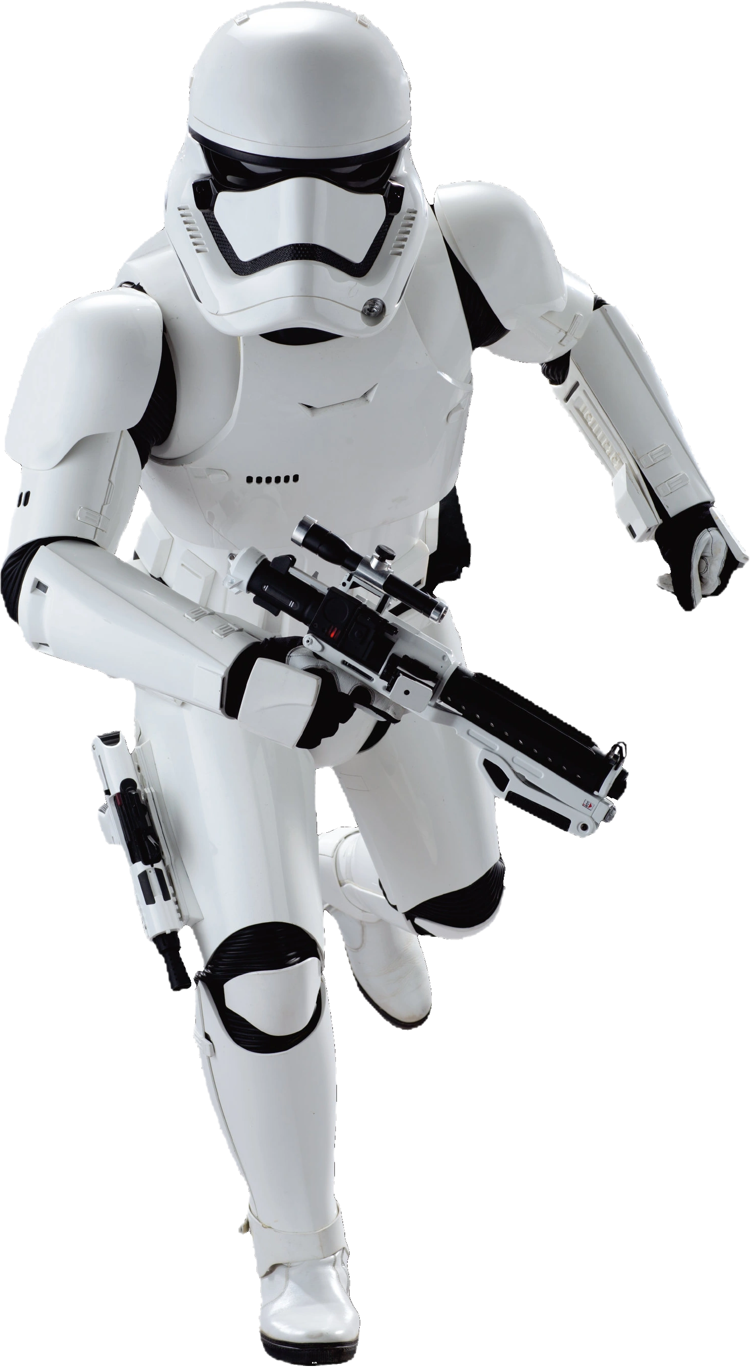 As the latest evolution of one of galactic history's most distinctive symbols of military might, the First Order's infantry units were outfitted with stark white armor derived from that worn by the Galactic Republic's clone troopers and the Galactic Empire's stormtroopers. To ensure absolute loyalty and conformity, First Order troopers were identified by alphanumeric designations instead of individual names and programmed from birth through regular exposure to state-controlled propaganda.