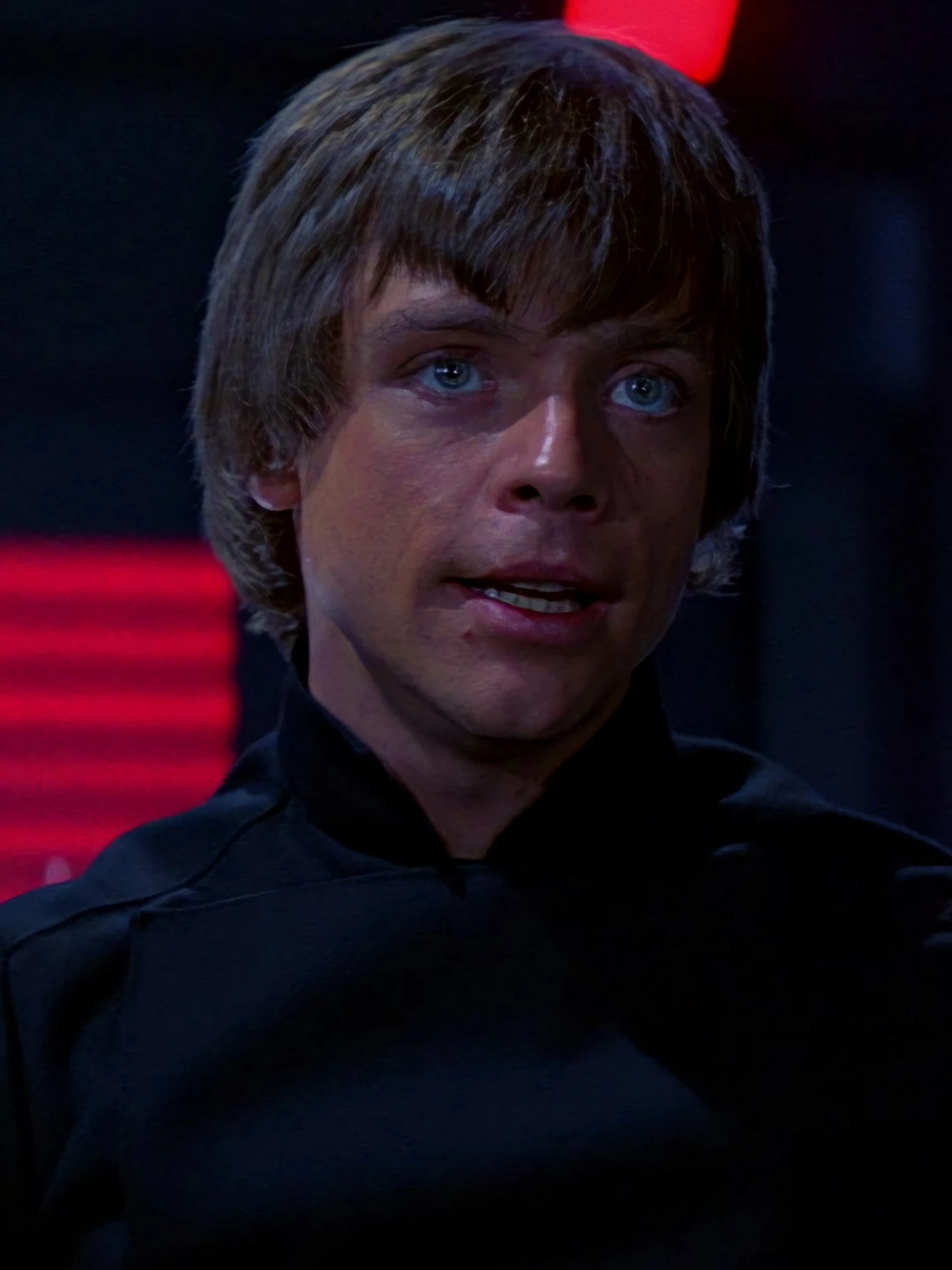 During the original trilogy, Luke was a tall and lean, handome young man with dirty blonde hair, fair skin, and blue eyes. He also had a white