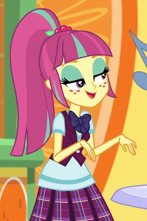 Sour Sweet is a female human and one of the Crystal Prep Academy Shadowbolts in My Little Pony Equestria Girls: Friendship Games.